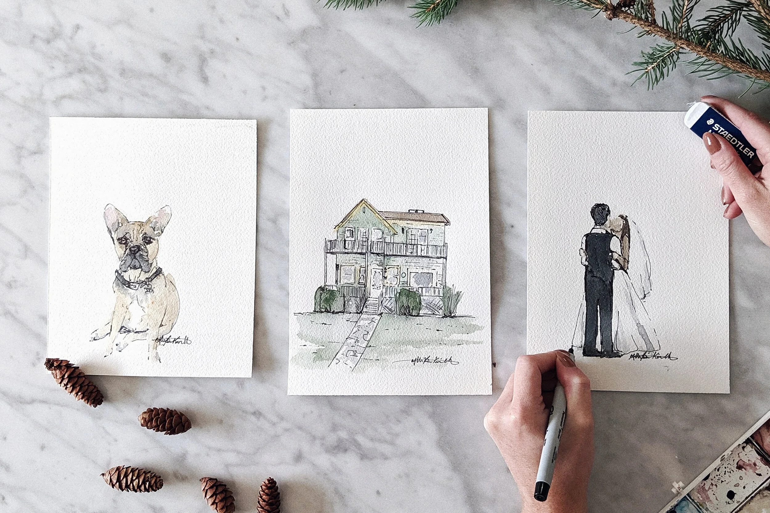 Are you looking to give a thoughtful and special gift this Christmas? Watercolor commissions can be done with almost any photo you have. Whether it is your furry friend or a picture of you and a loved one, send me your images and I will take it from there! If you’re interested in commissioning your loved ones into your own original artwork, click here!